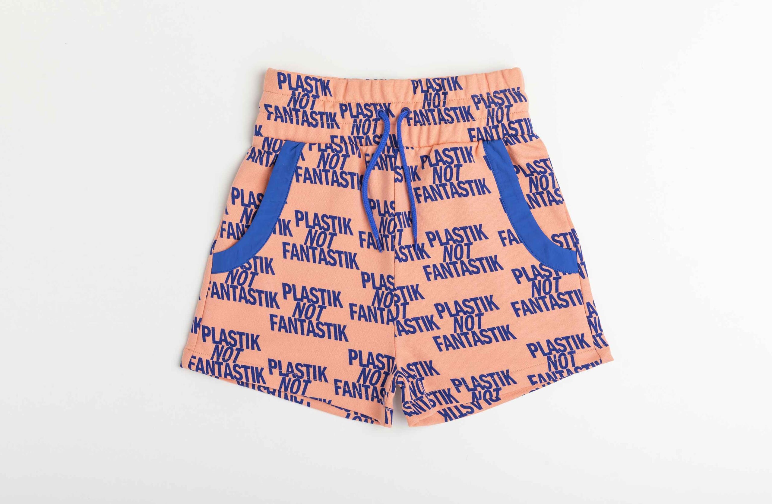Pantalón deportivo corto estampado con cordones en cinturilla ajustable. Detalles de tejido de plana en bolsillos laterales.