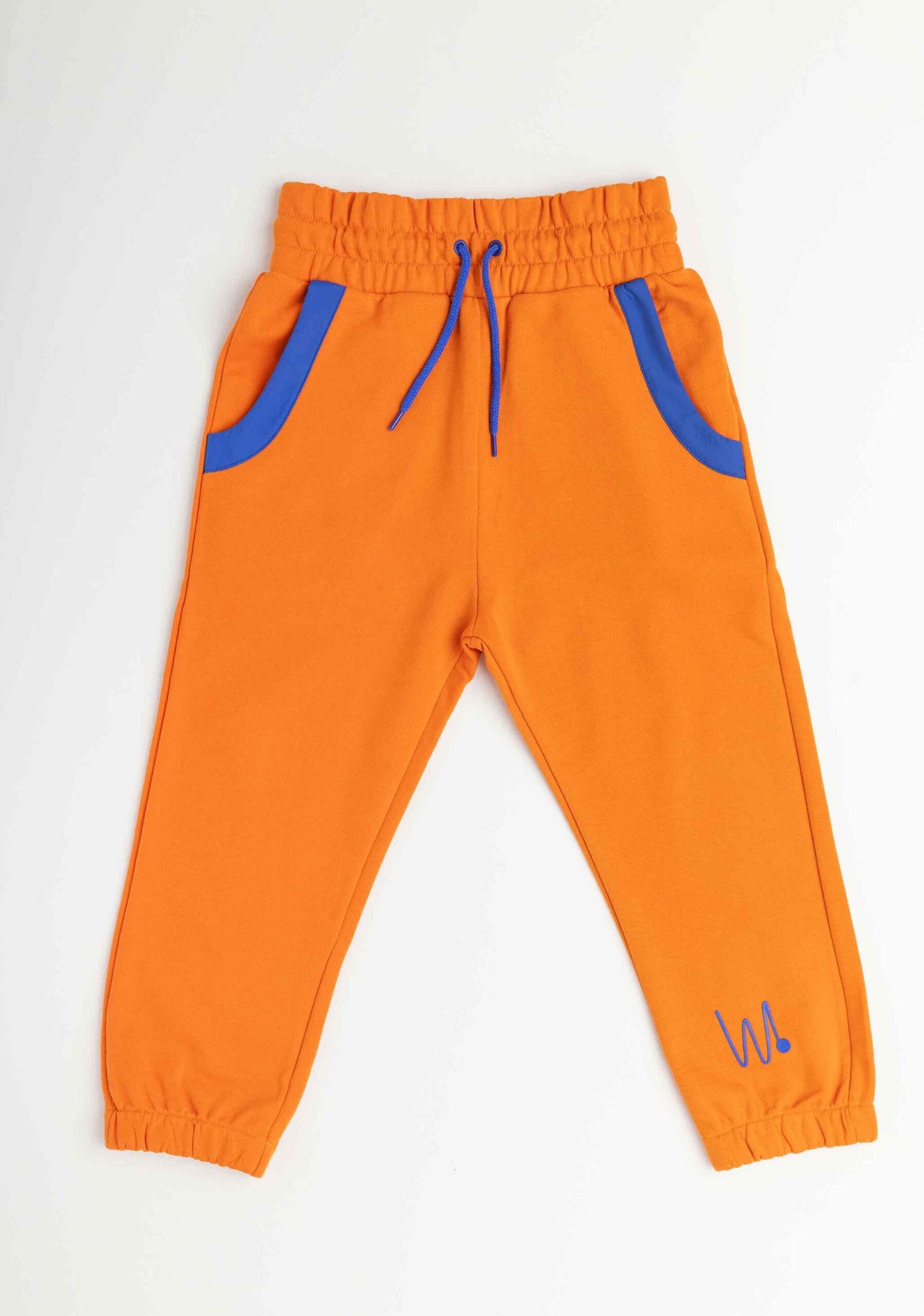 Pantalón deportivo largo liso con cordones en cinturilla ajustable. Detalles de tejido de plana en bolsillos laterales y estampado posicional a contraste en delantero y en bolsillo trasero.