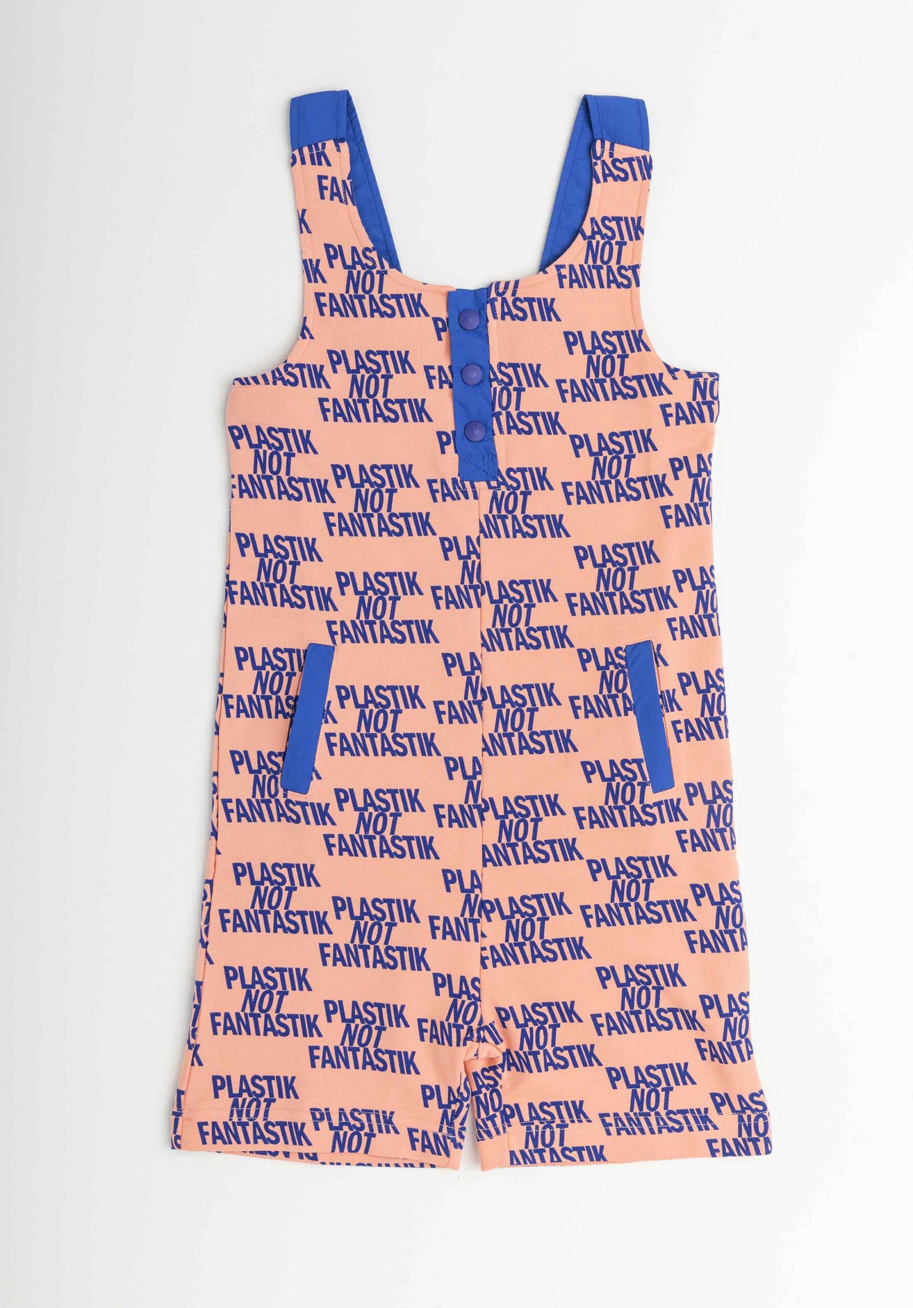 Mono corto estampado con detalles de plana en tapeta central y tirantes cruzados en espalda.