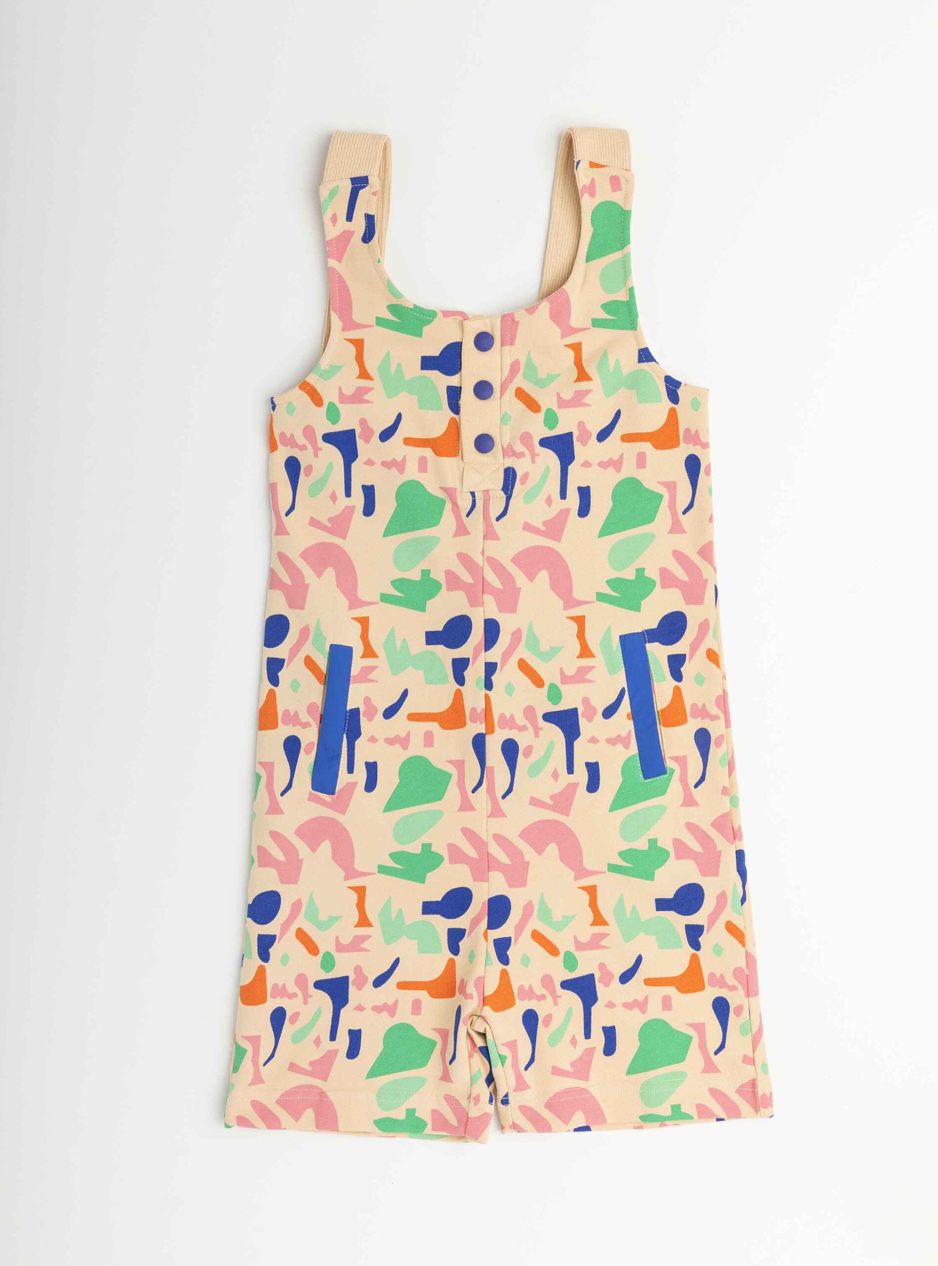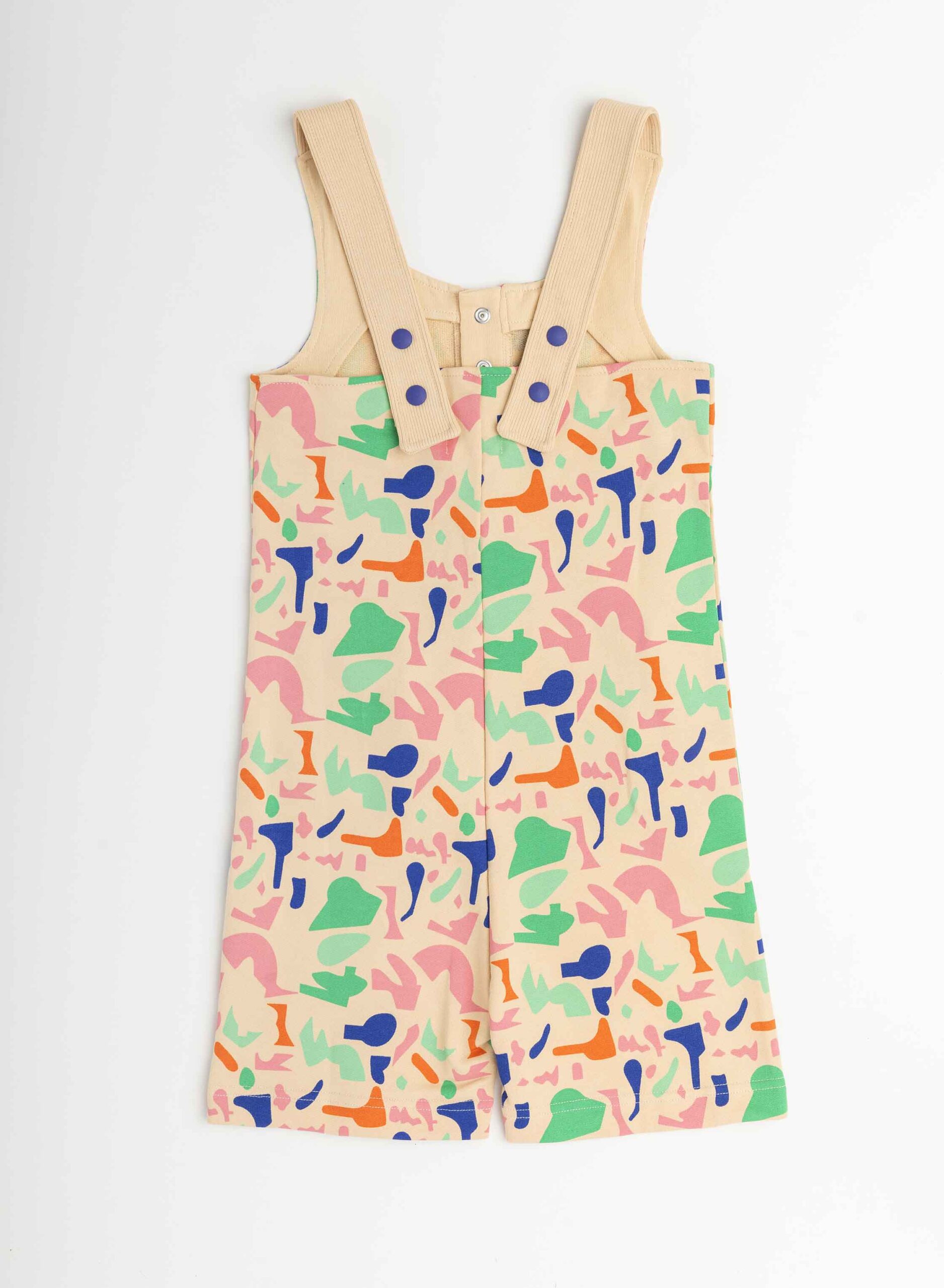 Mono corto estampado con detalles de canalé en tapeta central y tirantes cruzados en espalda.