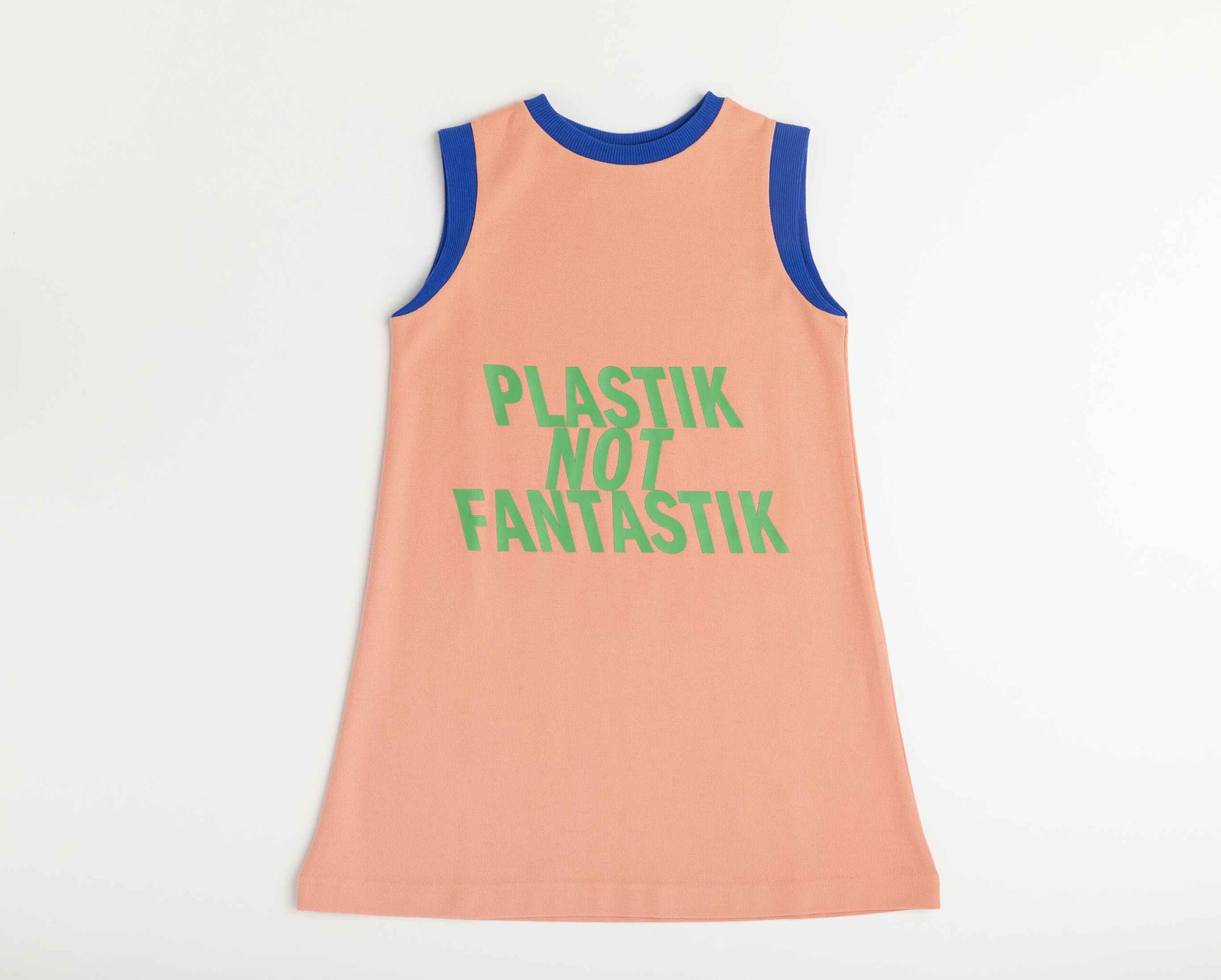 Vestido liso sin mangas con cuello caja con detalles a contraste y gráfico posicional en delantero.