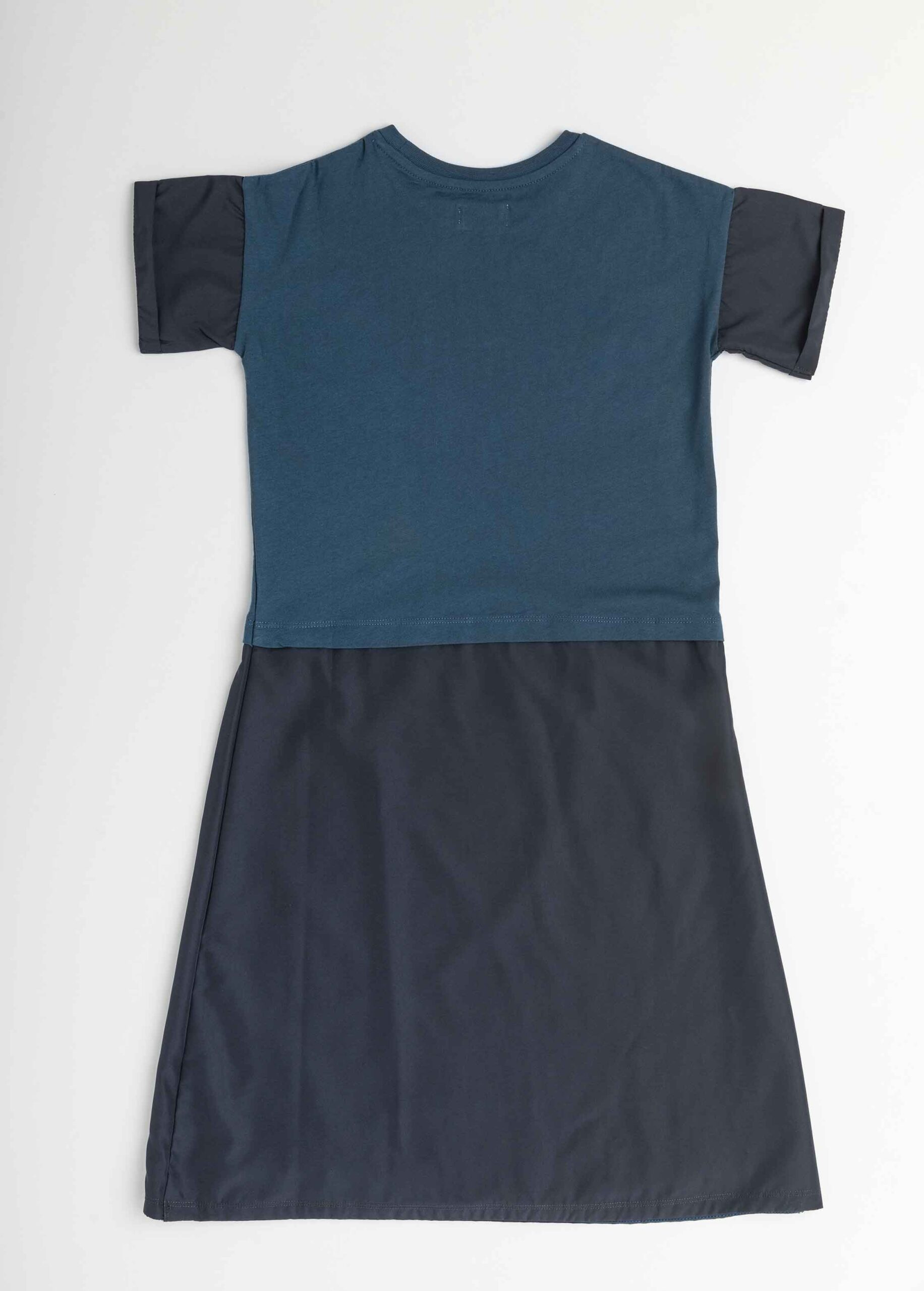 Vestido camiseta evasé midi con manga y falda en tejido de plana. Gráfico estampado a contraste en el delantero.